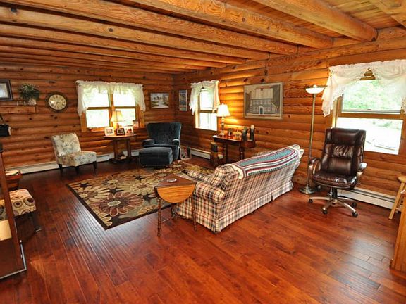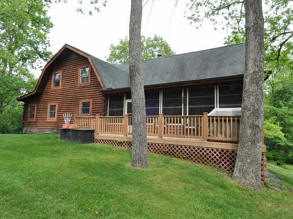 Amazing 3200 sqft home on 5.02 acres! This log cabin is located on a wooded retreat which includes a stream. Upon entering this home you will notice the gleaming new hardwoods throughout the first floor. The ceilings are beamed in the rich wood of the Log Cabin Style. The spacious Great Rm is inviting & opens into the Dining Area. The Kitchen includes a breakfast bar & center island. Adjacent is the spacious laundry room & Office/Den. Enjoy the Screened In Porch plus the new composite decking! The views are incredible! The Lower Level is finished, very spacious & has its own fireplace! The 2 car detached garage is directly behind the home. The wooded acreage is breath taking! View the stars, wildlife, peace & quiet. Don't miss this little piece of heaven! Call Kevin Hart at 614-571-1902 for questions or to schedule a showing!!