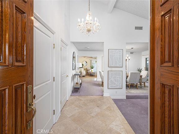 Highly desirable single story “Columbia” model home with 2016 SF featuring an open floor plan with soaring vaulted ceilings is awaiting you! Upon arrival you’ll see the exterior has been enhanced by a stamped concrete driveway and expanded front entry & porch. The interior features a spacious & comfortable living room and showcased by a natural stone fireplace and hearth and is adjacent to the formal dining room which creates a wonderful flow while entertaining either intimate group gatherings or large parties. The “great room” is a well-loved feature in this home and incorporates the kitchen with newer cabinetry, including pull-out shelves in the pantry, attractive granite countertops, and a charming breakfast nook area for casual daily dining. …Just outside is a cozy private patio, perfect for summertime BBQ’s and just beyond the patio is a grass area where the kids can go to play. You’ll love the primary suite with walk-in closet and attractively remodeled primary bathroom. Additional amenities include: Beautiful custom double-door entry, dual pane windows & doors, copper plumbing, central air conditioning, attractive ceiling fans in all bedrooms, kitchen refrigerator and so much more. Highly acclaimed Los Alamitos School District. Conveniently located close to Old Ranch Country Club, shopping centers, nearby parks and access to the 405/22 & 605 freeways.