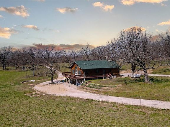 This custom cabin-style home is situated on 5+\- acres in Humansville, MO. With a beautiful view and peaceful setting, it offers the perfect retreat. The log-sided home, built in 2005, features 3 bedrooms (including 1 non-conforming bedroom) and 2.5 baths with a finished walkout basement. With 2200+/- sq ft of living space, there is plenty of room to relax and unwind. The main level boasts a large deck, allowing you to enjoy the surroundings. The living room features vaulted ceilings, beams, and a knotty pine ceiling, creating a cozy yet spacious atmosphere. The kitchen is equipped with custom cabinets and all kitchen appliances, making meal prep a breeze. The attached dining room is perfect for entertaining guests.