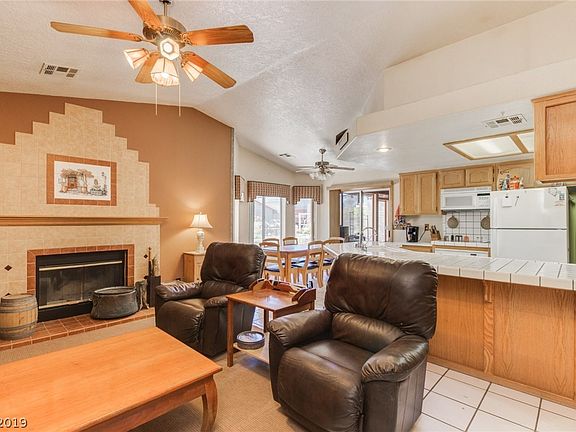 Beautiful 3 bedroom Pahrump home available on over an acre of property with breathtaking mountain views. Great outdoor space includes a garden area with raised beds. Fully screened in patio. Two garages, attached is carpeted and used as a den. Inside is bright and open with a spacious living area, vaulted ceilings, plant shelving and a charming fireplace. Master ensuite is complete with dual sinks and a beautifully tiled shower/tub combo.