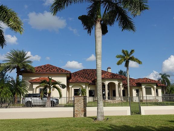 Welcome to this beautiful 7 bedroom custom built home with no expense spared, 12 Foot to 14 Ft High Ceilings throughout entire home, custom pool with waterfall and gazebo, 2 car garage, fireplace, 40k generator, sauna, large covered terrace, 1 acre lot with canal in the back, 500 sq. ft. game room, custom BBQ terrace, basketball court, batting cage, custom fence with electric door opener around the entire home, epoxy floors in the garage, centrally located in The Miramar Ranches, granite countertops, marble floors, security cameras, master bedroom is masterpiece with projector, so many details to mention, take a look at this beauty, LOCATION LOCATION, minutes from I75, shopping, 2 Publix, Pembroke Gardens Mall, Gym, Miramar Hospital within minutes