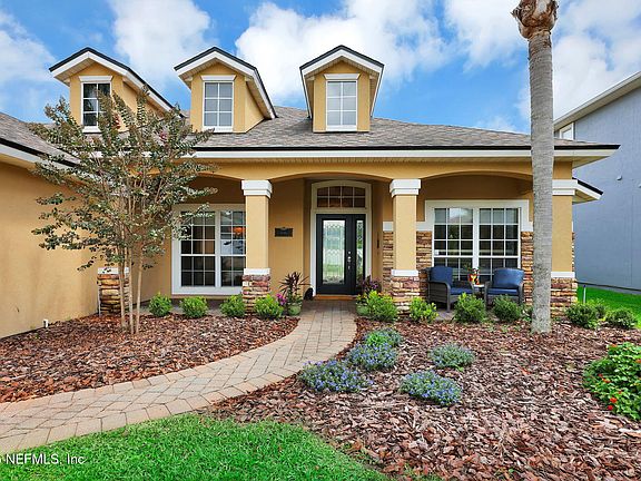 PRICE REDUCTION & MOTIVATED SELLERS! BRING ALL OFFERS! Come home to Pablo Bay in this single story, 4 bedroom/3 full bathroom, 2436 sqft home! Admire the curb appeal as you walk up to the front porch with stone accents. The beautifully landscaped backyard with extended patio with roll down shades and outdoor lighting is a perfect retreat at the end of a busy day. A separate dining room and flex room gives the homeowner options for either a craft room, home office, exercise room, or playroom. Warm wood floors, neutral paint colors and updated lighting throughout creates an inviting atmosphere. New stainless steel appliances and a walk in pantry make the kitchen overlooking the family room a great entertaining space. Split bedroom floorplan gives the primary suite privacy on one side while offering two full bathrooms for the additional 3 bedrooms on the other side of the home. Roof is only 5 years old. Wifi enabled washer/dryer, garage door opener, sprinkler system, and surround sound speakers. Pablo Bay offers incredible neighborhood amenities including an adult lap and children's pool, pickleball courts, tennis court, basketball hoop, dog park, two playgrounds and more along with many community events and activities. Right over the Intracoastal waterway from our beautiful area beaches and only minutes to the world renowned Mayo Clinic and Town Center shopping. Schedule your appointment today!