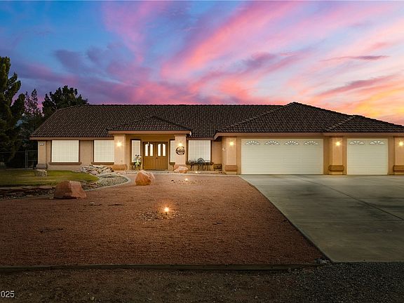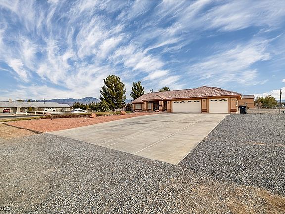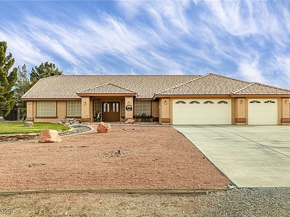 Welcome to your dream property in Pahrump, NV! This spacious 3-bedroom, 2-bathroom, single-family residence boasts over 2,400 square feet of living space and sits on more than an acre of beautifully landscaped grounds. Featuring a split floor plan including a formal living room and dining room. Enjoy ultimate privacy and outdoor living with a sparkling swimming pool, extended patios, and ample RV parking. A massive 50x30 RV garage/shop with plenty of room for your vehicles, tools, and hobbies. Beautifully manicured landscaping and extended patios create a serene setting for outdoor enjoyment. Relax and entertain in your own in-ground fiberglass swimming pool, perfect for hot summer days. Enjoy peace of mind with recently replaced water heater and softener. The home was freshly painted just two years ago, providing a well-maintained and modern look. This property is located in a sought-after area with everything you could need and a price that will sell! Move-in ready!