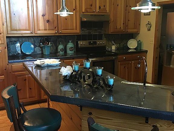 Are you searching for a peaceful home in a private setting? This beautiful handicap accessible home on 4 acres (approx.) awaits you. The soaring vaulted ceiling and windows are amazing. Kitchen boasts concrete countertops with epoxy finish, stone backsplash and beautiful pine cabinets. The main home is 1738sf (approx.) with 3 bedrooms and 2 bathrooms and the guest cottage/in law suite is 550sf(approx.) with 1 bedroom and 1 bathroom. (Square footage combo of both is 2314sf approx.) House has 4 porches plus additional workshop/storage building with covered carport. **