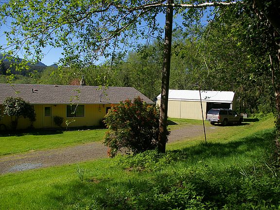 Sportsman's dream. 450 feet Riverfrontage (w/boatslide) and fantistic view of Onion Peak. House well above the flood plain. House, small garage and two shops.