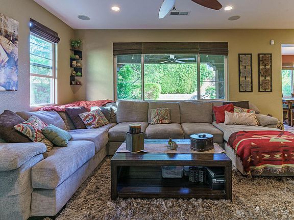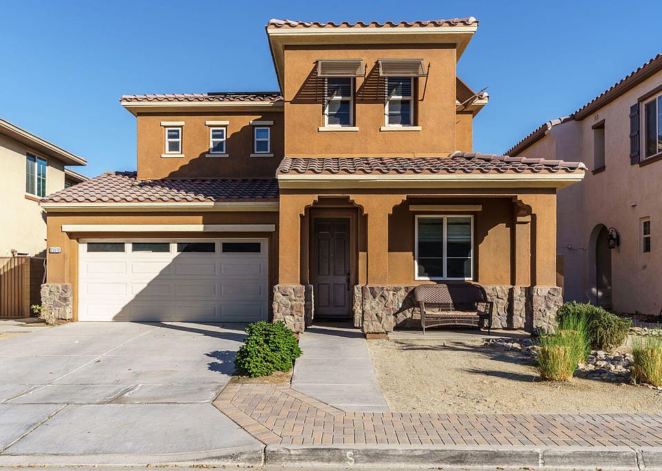 Welcome to Dolce! A gated-community in sunny Palm Desert! This beautiful 3-bedroom, 3- bathroom home with SOLAR SYSTEM. This home was recently upgrade. Office was converted into a en-suite bedroom and is used a 4th bedroom. Also this home has newer flooring, paint, LED lights throughout, refrigerator, microwave, dishwasher, stove top. It has been very well maintained! Clean, bright, and an open floor-plan gives you a large living space downstairs by combining the kitchen and living room (which has a gas fireplace and is wired for surround sound), and dining area making it perfect for entertaining! Like to cook? This kitchen is a dream! A five-top gas range, a conventional oven and all stainless steel appliances, and a instant hot-water dispenser! There is a spacious backyard with a heated spool (spa/pool)! The lower level also features the new en-suite bedroom, while the upstairs has three bedrooms with lots of closet space! There is also a neighborhood park and pool included in the community. There is also a Tesla batter charger too! Conveniently located close to plenty of great shopping and restaurants and Disney's new resort is walking distance! Low HOA of $172 per month. Buyer(s) should do their own due diligence and verify on their own all statements. Seller is also the listing Broker.
