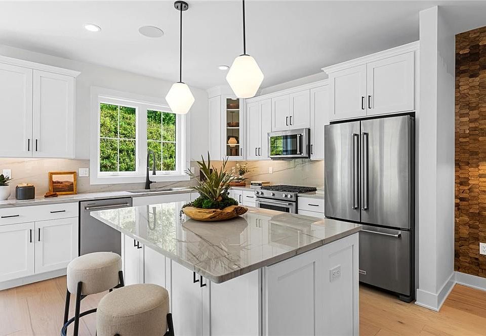 - Double Vanity, Kitchen Island, Open Floorplan, Quartz/Quartzite Counters, Storage