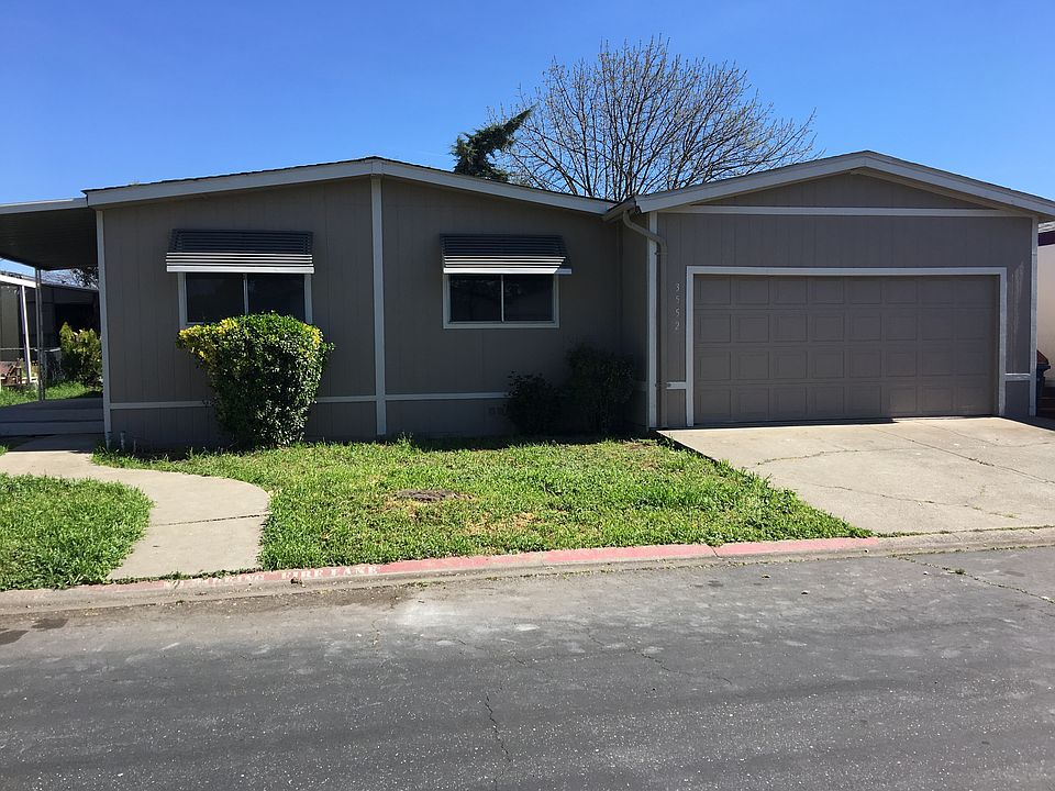 Beautiful 2 bedroom 2 bath mobile in The Meadows family mobile home park. This home has a rare 2 car garage, brand new roof, new flooring throughout (carpet and linoleum) new paint inside and out, brand new concrete patio in back yard, new range, new sinks, new fixtures, section one pest clearance, bathtubs/showers have been recoated and look brand new. HvAC has been serviced, section one pest clearance, indoor laundry... Move right in ... This park has a community pool and hot tub, and playground for kids. Great family park! This one won't last! There is a small sideyard behind the garage with room to garden and a covered BBQ patio area where the new concrete pad is being poured. This home was pending and buyer backed out because he wanted to build a 6 foot fence and only 4 foot is allowed by the park. Everything has been updated and addressed. Whole house inspection on file, pest inspection on file, electrical ispection on file, plumbing inspection on file, HVAC inspection on file.