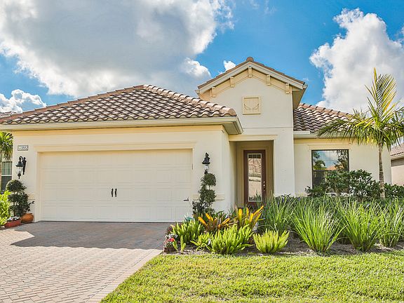 LIKE NEW- Fabulous opportunity to live in one of Naples newest developments located in the highly desired North Naples area. With captivating long lake views and southwest exposure, this magnificent home features open floor plan with three bedrooms plus a den, two and a half bathrooms, two car garage, and fabulous interior finishes including tray ceilings, crown molding, plantation shutters, gorgeous foyer entry and much more. Upgraded kitchen with large granite island, breakfast bar, spacious walk-in pantry, upgraded appliances, cabinetry, and separate dining area. Private master en-suite includes lake views, his and her walk-in closets, and spacious glassed walk-in shower. Relax or entertain on your spacious screened lanai with pool and enjoy breathtaking lake and fountain views. Canopy is situated among 54 acres of lush preserves, lakes, and greenery. In addition to Canopy's nature trails and tree-lined sidewalks, it is also conveniently located just minutes from Gulf beaches, restaurants, golf courses, and more.