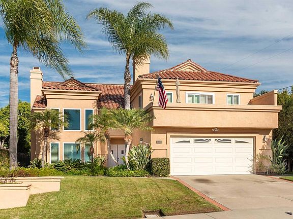 Perched atop an elevated .17 acre lot on one of Olde Carlsbad’s most iconic streets, this quintessential residence offers privacy & comfortable sophistication with awe-inspiring panoramic ocean views. Main-level guest BR & full BA. Curb appeal exudes from mature landscaping & inviting walkway that meanders to the dramatic double door entry. Soaring 2-story ceilings, vast double stacked windows, an elegant fireplace & an abundance of natural light beckons you to the remarkable formal living room featuring custom built-in bookshelves & cabinetry. Adjacent formal dining room features picturesque windows & built in wine rack with storage for 44 bottles - an ideal setting for hosting elevated gatherings. Charming kitchen overlooking the backyard equipped w/ granite counters, tray ceilings, breakfast bar & extended breakfast nook. The open-concept of the kitchen & family room w/ a wall of windows combined w/ glass sliders, offers an expansive feel extending the comforts of the interior outdoors. Affording the timeless charm of sunset ocean views from an expansive balcony, the romantic primary suite features a modern fireplace, sliding glass door, plantation shutters, expansive walk-in closet with potential for a home office or nursery & spa-quality BA w/ dual sinks, soaking tub & walk-in shower. Spacious loft w/ picture windows, tray ceilings & built-in media center & office work station. 2 secondary BRs and an additional full BA rounds out this magnificent floor plan. The expansive & private backyard offers a perfect balance of beauty & function w/ ample room for entertaining, large open patio & lush landscaping. Nearby Carlsbad High, Valley Jr. High, and Magnolia Elementary. Conveniently located near Carlsbad Village, restaurants, the beach & more w/ easy access to I-5. To see it is to love it!