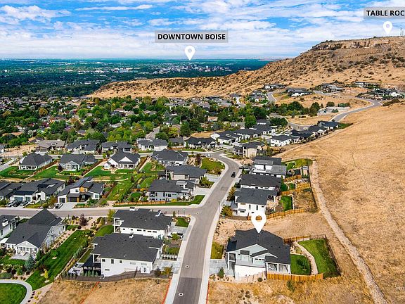 Stunning Todd Campbell custom home in Boulder Point, perfectly positioned below Table Rock with no back neighbors. This thoughtfully designed, perfect condition home blends modern elegance with timeless craftsmanship. A vaulted great room welcomes you into an airy open floor plan that flows seamlessly to a covered patio and spacious backyard that embraces all the foothill beauty. To the south, a second covered deck offers sweeping views of Barber Valley. The bright kitchen is a showpiece, featuring Thermador appliances, full-height cabinetry, and a sprawling island perfect for gathering. Upstairs, a secure primary suite and office create a private retreat, while the lower level is built for entertaining with a large family room, two bedrooms, and a full bath - ideal for guests or multi-generational living. Located in the Boise foothills near hiking and biking trails, the Boise River, Greenbelt, Micron, Lucky Peak, and downtown. This home offers a perfect blend of style, privacy, recreation, and modern luxury.