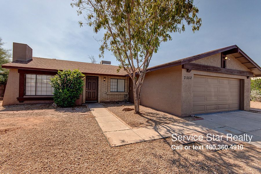 SCHEDULE A SHOWING ONLINE AT: showmojo.com/lh/5451639026 ONE MONTH FREE RENT CREDIT w TWO YEAR LEASE! This fantastic 5BR 3BA home has been remodeled and upgraded throughout! Great location near local parks, schools, shopping and freeway access! Great curb appeal with easy to maintain desert landscape, 2 car garage and brick front accent. New carpet, blinds and fresh two-tone paint throughout! Blinds to keeps cool. The living room features a cozy fireplace. The kitchen offers granite counters, dual sink, pantry, breakfast bar and matching appliances! The 3 guest rooms are spacious and share a hall bath with new fixtures. Your new master is large with an en-suite private bath. Attached bonus studio suite has private entry, walk in closet and it's own bathroom! Perfect for Mother in law suite! The rear yard is perfect for entertaining family and friends. Huge covered patio and trees. Schedule your self guided tour today! STATUS: Vacant PET RESTRICTIONS: No Aggressive or Dangerous Dog Breeds, specific breeds are listed in our rental criteria SMOKING: No smoking is allowed on the premises SHOWING INSTRUCTIONS: To Schedule a Showing GO TO: http www.leaseaz.com/schedule-a-showing Register for a Self-Guided Tour Receive txt or email confirmation On the day of your visit receive a CODE to retrieve key from electronic lock box APPLICATION INSTRUCTIONS: GO TO: Ensure that you have all the required documents handy and ready to attach to application Complete the Online Application Form Pay the Application Fee with credit or debit card SECTION 8/HOUSING ASSISTANCE: Not Accepted More Information: AREA INFORMATION: Parks, Schools, Shopping! FLOORING: carpet / linoleum GARAGE/PARKING: 2 car garage KITCHEN/LAUNDRY APPLIANCES INCLUDED: Fridge, dishwasher, oven, microwave PROPERTY TYPE: single family home UTILITIES INCLUDED: Tenant to pay for all utilities YEAR BUILT: 1981 YARD: Desert Additional Amenities:Fireplace! Application, Lease Terms, and Fees MOVE-IN FEE: $195 Lease Administration Fee, $250 Pet Application Fee where applicable HOLD FEE/EARNEST MONEY: Equals one month rent and it is due within 24 hours of application accepted. ADDITIONAL FEES NOT INCLUDED IN RENT: $19 monthly admin fee and city sales tax Application Fee: Non-Refundable, $55/adult APPLICATION TURNAROUND TIME: 3 business days LEASE LENGTH: 1 year or 2 years LEASE TO PURCHASE OPTION: Not Available SPECIAL LEASE PROVISIONS: None HOA Instructions HOA AMENITIES AND SERVICES: NA HOA FEE: NA PROPERTY MANAGER:SH All information is deemed reliable but not guaranteed and is subject to change. Tenant to verify all material facts including but not limited to room sizes, utilities, schools, HOA rules, community amenities, fees and costs, etc. 2 Car Garage Blinds Built In Micro Covered Patio Desert Landscape Disposal Fridge Granite Counters Microwave Oven Pets Allowed Range/Oven W/D Hookups