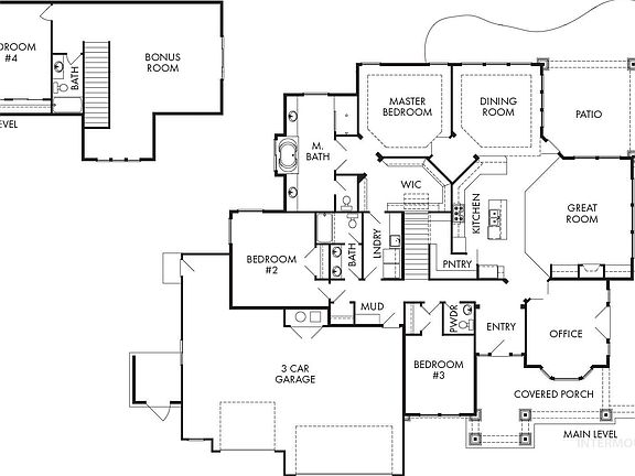 - Bath-Master, Bed-Master Main Level, Split Bedroom, Den/Office, Rec/Bonus, Double Vanity, Walk-In Closet(s), Breakfast Bar, Pantry, Kitchen Island, Granit/Tile/Quartz Count, Number of Baths Main Level: 2, Number of Baths Upper Level: 1, Bonus Room Level: Upper