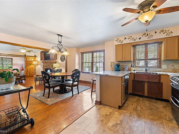 Stunning, completely remodeled Ranch condo in Poland School District with 3 BR's and 3 full baths. Quaint entryway that leads into open concept kitchen, dining and living areas. Spacious Great room featuring a stone FP with a custom-built cabinet complete with barn doors that, when opened, reveal large screen TV. Through beautifully hand-crafted barn doors is a charming area with a floor to ceiling stone FP and several windows allowing plenty of light. The kitchen features new flooring, granite countertops, farm style sink, a trendy tile backsplash and plenty of cabinets for ample storage. A large peninsula easily accommodates 3-4 barstools for easy entertaining. All appliances stay! First floor laundry room includes granite countertops and tile backsplash complete with sink and extra pantry storage. The spacious primary BR with walk-in closet has a view of the park-like backyard. You will enjoy a recently updated on-suite bathroom with new flooring, a floor-to-ceiling tiled shower, hi