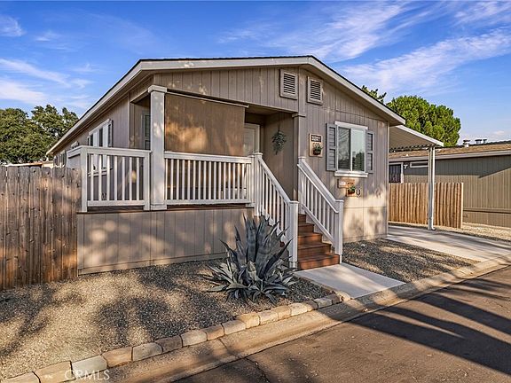 Honey, stop the car! Finally, you can be offered an opportunity at affordable home ownership without sacrificing the condition and aesthetic! This 2021 built 3 bedroom, 2 bath manufactured home is situated in the charming family park of Rancho Chico. As you pull up to this home, you will appreciate the front covered porch for sipping your morning coffee and the covered carport to protect your car from the elements. Inside, you will be charmed by the open floorplan that boasts laminate floors, an open concept kitchen with quartz countertops and shaker cabinets. The kitchen features an eat-in bar counter but there is also a more formal dining nook with beautiful built in shelving throughout. The primary bathroom boasts a walk in shower, linen cabinet, matching shaker cabinets and matching quartz counters. The primary bedroom also boasts a walk in closet. All the bathrooms feature under-mount sinks, stainless steel hardware, and exhaust fans. You will also appreciate that the guest bath offers a tub shower combo for those kiddos in your life! This lovely home includes all appliances and is utterly move in ready! Newer appliances, newer HVAC, newer roof! Off the carport you will also find a storage shed and low maintenance landscaping throughout. Homes of this caliber don't come on the market often! Don't let this fabulous opportunity pass you by!