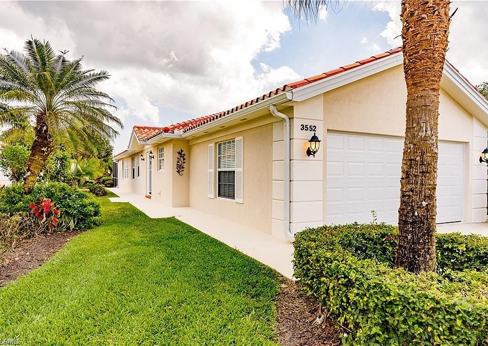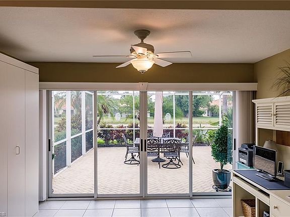 This sought after Capri Model is meticulous and move-in ready! This home has an Extra 150 Sq Ft under A/C that includes a custom built murphy bed system and cabinetry. Updated double sliding door leads out to the paver lanai featuring a retractable awning, Southern Exposure and Beautiful lake views.*BRAND NEW ROOF*,GUTTERS, LANAI SCREENING AND HURRICANE PROOF GARAGE DOOR. Comfortable and Spacious Entertaining can be yours in this home. Bright Open kitchen featuring Granite Countertops, Under cabinet lighting and Updated Appliances. Both bathrooms have luxurious granite countertops. This home is beautifully painted and all blinds and carpet have been updated. Centrally located in North Naples, the beautiful town center in Village Walk has much to offer including an on-site restaurant, 2 community pools, Har-Tru tennis courts, fitness center and so much more! HOA includes HDTV fiber optic cable, High speed internet & phone. Short drive from Vanderbilt beach and Popular Mercato Shopping and Dining Destination. Stop your search! Come and see why people love these homes, Love this Community, Come and make this stunning home your address in Paradise!!