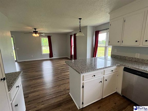 The country is calling out for you in Bishopville, SC. This cutie has two spacious bedrooms, one bathroom and has been renovated in the past couple of years. There is a nice open floor plan allowing maximum space for everyone to enjoy. The kitchen boasts granite countertops, stainless steel appliances and an abundance of cabinets. The bedrooms have large closets. They share a bathroom that has a double vanity with granite countertops. Vinyl plank flooring flows throughout. Outside is where you'll want to be. With close to an acre, make plans for all your favorite outdoor activities. Storage will not be an issue. There is both an attached storage room and a wired workshop. End those long summer nights lounging on the front porch with good company!