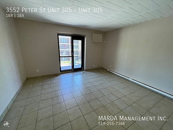 Welcome to 3552 Peter St Unit 305, a charming 1 bedroom, 1 bathroom apartment located in the heart of historic Sandwich Town. This bright and spacious unit offers comfort, convenience, and characterperfect for individuals or couples seeking a well-located home near the University of Windsor and Mic Mac Park. Enjoy an open-concept layout with high ceilings and large windows that flood the space with natural light. The kitchen features warm brown cabinetry with plenty of room for meal prep and casual dining. The living room leads out to a large private balconyideal for relaxing, entertaining, or growing a small garden. The unit also includes four large closets for generous storage. Additional conveniences include on-site parking and a $40/month laundry card for shared laundry facilities in the building. Nestled in a vibrant neighbourhood, you're steps away from transit, parks, restaurants, and other local amenities. ALL INCLUSIVE WITH NO CAP. First and last month's rent and a credit check are required. Professionally managed by MARDA Management, offering 24/7 maintenance support and easy rent payment options. Coin Operated Laundry No Smoking Allowed Pet Friendly