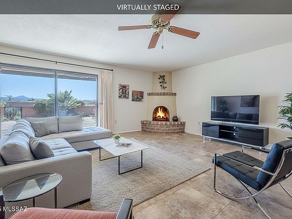 This stunning property overlooks an arroyo with breathtaking, direct views of the mountains--no homes behind you to interrupt the scenery while you enjoy your time outdoors! Experience the desert retirement lifestyle you've always dreamed of, spending mornings walking along the county park trails and endless evenings dining al fresco under the stars with friends and family. Enjoy both a covered patio for shade during sunny days and an extended paved patio that provides ample room for entertaining. Adding a fire pit to to this space is the perfect way to invite more intimate conversations Inside, the cozy living room fireplace is ideal for those chilly Arizona evenings, and is complemented by sliding glass doors that frame the spectacular mountain views! The large kitchen also showcases those million-dollar mountain views, making every moment at home special. The spacious primary suite features a generous walk-in closet, while the second bedroom is perfectly sized for guests or a home office. Embrace the quintessential Southern Desert outdoor lifestylewhere year-round sunshine, dramatic desert sunsets, and temperate winters invite you to live outside as much as inside. This low-maintenance townhome lets you spend less time on upkeep and more time enjoying hiking, stargazing, and the natural beauty that surrounds you. With million-dollar views and no backyard maintenance required, this is effortless desert living at its finest!