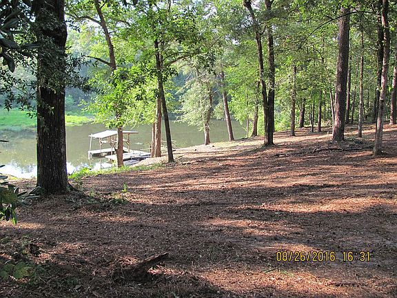 "Waterfront". Very secluded full brick home that has a deep water dock, about 10-12 feet deep. It has two watercraft drive on docks. The main house has 4 bedrooms and 3.5 bathrooms. The master bedroom is very large with a walk in closet. There is an additional 900 sq, room. This room offers its own split unit. Along with a private entrance/exit. The property also features a detached 2 bedroom, 1 bathroom apartment for guests or "live in", relatives. The apartment bedrooms feature a king size bed in one and a queen size bed in the other. The apartment, is complete with a full kitchen, washer/dryer, dining room, and a living room. New heat/air unit installed 2022. There is a wood deck (12' X 14'), attached to the back of the apartment. The entire property is wifi enabled and has security cameras. There is a 2 car garage that is large enough for a workshop also. There is also a detached pole barn that is 22 X 35 for tractor and boat storage. This home has so many extras, it is truly a hidden gem, there are so many extras to list. The property has a gentle slope down to Beautiful Lake Eufaula.