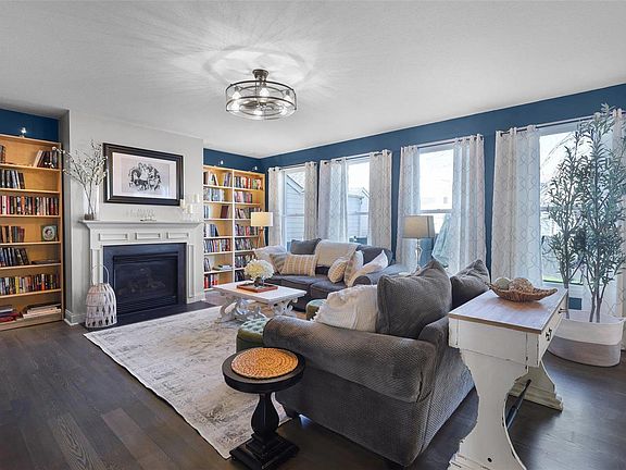 ONE OF A KIND Home in New Town! Stunning 2840 sq ft, 4 bdrm, 2 full/2 half bath plus FINISHED basement, huge FENCED-IN backyard w/ TURF, OVERSIZED 3 car garage, DOUBLE porch w/ DOUBLE staircase, 9' ceilings on ALL levels are just a few things that make this house AMAZING! Main level has gorgeous HARDWOOD floors throughout, living rm w/ bookcases surrounding the GAS FIREPLACE, formal dining room, office/den, breakfast area, laundry rm & powder rm. Kitchen boasts of 42" custom cabinets w/ crown molding, QUARTZ countertops, stone backsplash, SS appliances & WALK-IN pantry. 2nd level has master bdrm w/ 2 WALK-IN closets & bath w/ dual adult height vanities, shower & soaking tub. 3 add'l bdrm, full bath & loft area walking out to covered balcony. Lower level has a huge rec room, wet bar area, half bath w/ rough-in for shower, small workout area & has potential for 5th bedroom. Lots of space in the backyard w/large patio, all turf in greenspace & 6' privacy fence! So many AMENITIES to ENJOY!
