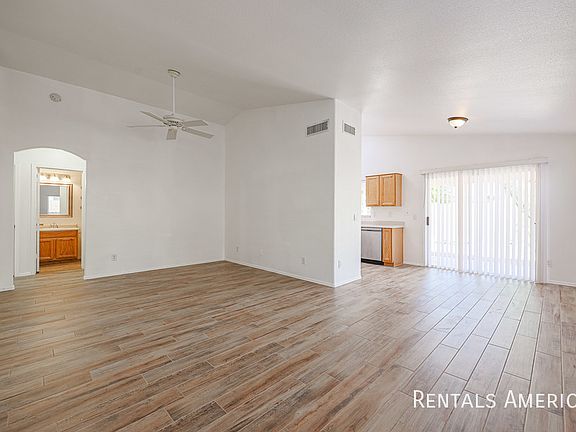 Stunning single level 3 Bed/2 Bath Home in Riata Hills. New full interior paint and new flooring throughout. Blinds & Ceiling Fans throughout. Kitchen has pantry and raised panel oak cabinetry. Vaulted ceilings and decorative ledges in Living Room and Master. Dual flush toilets in both bathrooms for water savings. Master has Garden Tub, Walk-In Closet. The Lovely Back yard begins with Covered Patio, a plant oasis, no-dirt rock covering, & a mature tree for your outdoor enjoyment. Landscaping is all redone for easy care & simple beauty! Convenient to schools, shopping, & freeway access. *Pets upon owner approval* *One Time Admin Fee: $300, Pet Deposit $300 per pet (If applicable) Municipal Tax: 2.3%, Service Fee: 2%* Resident Benefits Package: $39/month. Helping Heroes Discount Available! Available Carpet Ceramic Tile Disposal Garage Pets Allowed Vaulted Ceilings