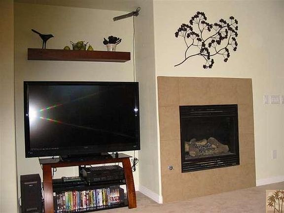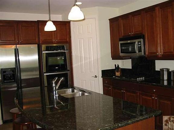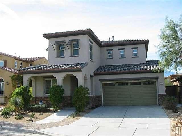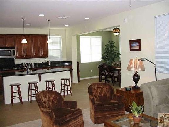 Beautiful three bedroom, three bath home in the gated community of Dolce. Built in 2006, the home's open floor plan is perfect for entertaining and you'll enjoy views of Mt. San Jacinto from the kitchen, dining area and great room. Chef's kitchen includes a large island, granite counters, pantry and stainless steel Whirlpool appliances including a double oven, microwave and gas cooktop. The great room features a gas fireplace and surround sound. The home includes a den/office on the lower level and a large laundry room is conveniently located upstairs. Laundry includes like-new Whirlpool front load washer and dryer, sink and plenty of storage. Also upstairs are two guest bedrooms and guest bath plus a spacious master bedroom retreat featuring large walk-in closet and huge bath with dual sink vanity, soaking tub with Mt. San Jacinto views and separate shower. The Dolce community has a beautiful community pool and spa area with changing rooms and a barbecue area.