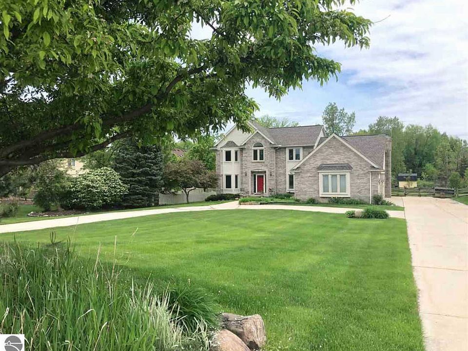 Conveniently located on 7 Mile Road, but set far enough back for privacy is this stately, brick executive home. As you pull in the large circle drive you are greeted by well maintained perennial flower beds, and perfectly manicured lawn. Offering four bedrooms upstairs, including a massive master suite with walk-in closet, main floor laundry, formal living and dining rooms, eat-in kitchen area, and beautiful family room with soaring ceilings and commanding fireplace. The main floor also offers an additional bedroom/den/office. Three car garage, that is also extra deep, with plenty of storage. Take a trip out the back door and enjoy the large fenced yard, two level patio, and lovely landscaping. All updated mechanicals including furnace, on demand water heater, and central air conditioning. This is a must see home.