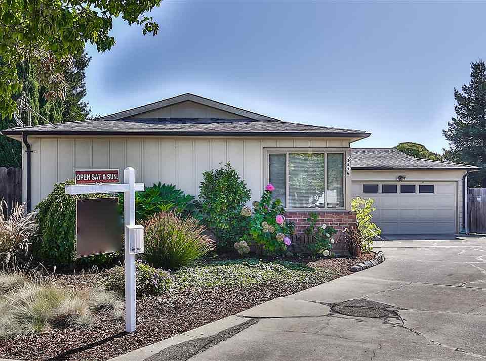 Charming 'pride of ownership' home in central Newark. Remodeled kitchen with tile counters, oak cabinets, self-cleaning oven, newer refrigerator (stays),microwave, tile floor. Two updated baths, new low-flow toilets. Original oak hardwood floors in most of home; two bedrooms carpeted; family room/kitchen tile floors. Do not miss the peaceful, professionally landscaped back yard with water feature, pergola and more. Huge side yard with garden/work area with irrigation. Enjoy fresh fruit from 2 apple trees, one orange tree, 2 lemon and one lime tree. Dual pane windows, newer water heater, copper plumbing (most of house), Philippine mahogany book cases in living room, ceiling fan, storage sheds (stay), built-in storage in 2-car garage. Sewer system from home to sidewalk replaced approx. 5 years ago; two new clean-outs. Private, end of court location. Near Challenger School, Mirabeau Park, easy access to freeway, Dumbarton Bridge, Facebook, Tesla, shopping and restaurants.