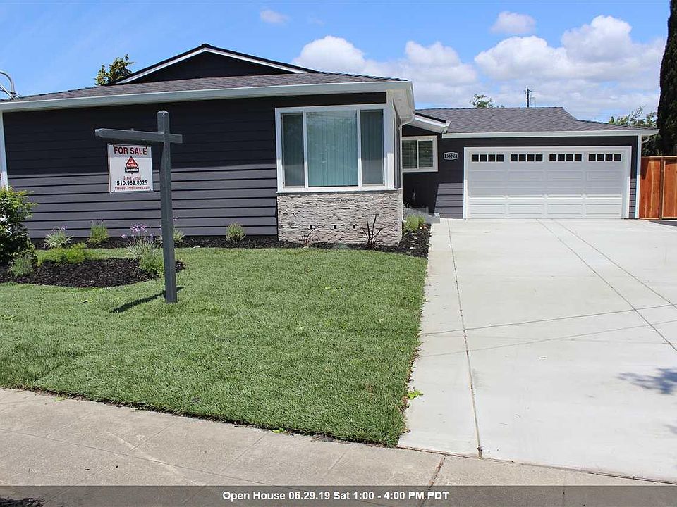 Completely remodeled home, redone top to bottom with new roof, exterior wood siding and interior floors. Spacious, comfortable, flowing floorplan. Brand new kitchen with quartz counters with breakfast bar, new gas range and island hood, new dishwasher , cabinets and pantry. Master suite offers loads of closet space and a remodeled bath. The back bedroom is large and could be used to rent out apart from the rest of the rooms. Brand new furnace and air conditioing. New garage door and opener. New vinyl plank flooring throughout. New interior and entry door. Fresh paint in and out. Section one pest work cleared. New water heater. Laundry hookups allow for a gas dryer. Brand new backyard deck and fresh landscaping front and back with automatic sprinklers and drip irrigation. Huge new driveway will accomodate at least four cars, or maybe a boat or r/v. Outstanding Bay Area court location - close to Facebook, Tesla, Google, 880, Dunbarton Bridge. Walk to shopping and dining.