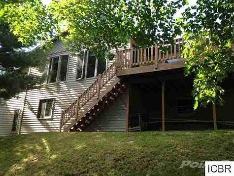 Excellent location with close proximity to town convenience and beautiful sunsets on a quiet Bass Lake bay to enjoy all the summer days and nights. This 4bdrm open floor plan features a wall of windows, vaulted ceilings, island, Jacuzzi tub, freshly painted, dock, huge family room, att heated garage could easily be a future sauna w/shallow well currently there, just needs to be hooked up again. Tarred driveway, original house built in 1969 and was updated &remodeled in 1999 with higher elevation & trail & steps to very good lakeshore beach area.