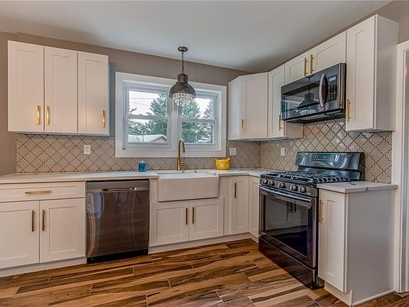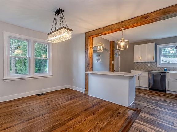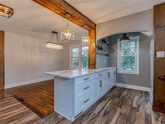 Nestled back off the road in a sweet wooded area, this home is full of charm and tons of character. Definitely a place you would want to call home! First floor boasts totally new awesome kitchen with soft close shaker cabinets, upgraded quartz, black stainless appliances, farmhouse sink, breakfast bar and a formal dining room with cool lighting! Two large bedrooms, living room with large window and glass slider to a new wood deck looking out to a great yard! A beautiful all new full bath rounds out the first floor. Second floor is the MASTER Suite and it is Sweet! Large full bath with skylights, walk in shower, double sink. This bedroom with so much character it is magazine worthy! The List: all new seamless gutters and downspouts, additional driveway for off street parking, new front porch and 20x20 back deck, solar powered lamp post and sidewalk lights, new motion sensored outdoor lights, 100+ year old beam in entry, exposed brick in entry and fireplace, PLUS!