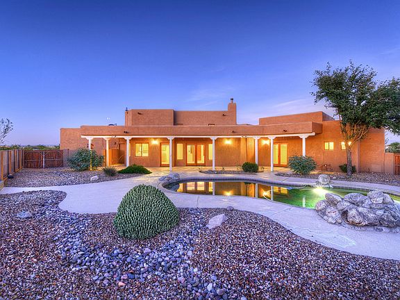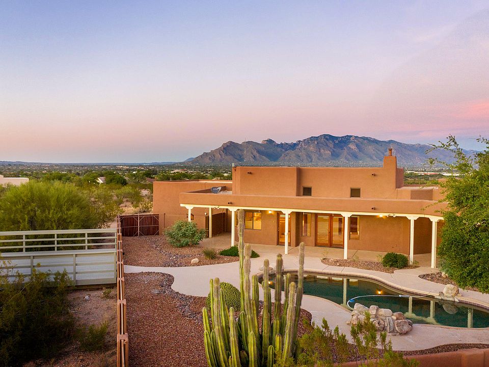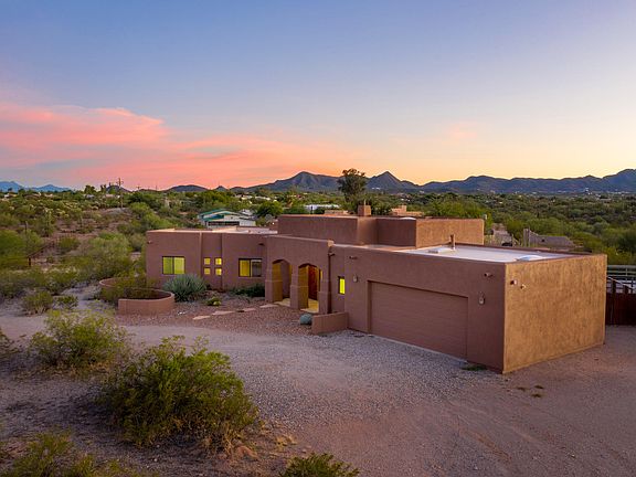 Privacy and views! This tranquil, Santa Fe-inspired home is remarkable inside and out. Situated on equestrian-friendly property surrounded by natural desert and neighboring washes/dirt roadsfor convenient, no-trailer-required horseback riding! Sweeping mountain and valley views during the day; spectacular sunsets, twinkling lights, or stargazing at night. Serene backyard withexpansive covered patio is perfect for relaxing and entertaining poolside. Picturesque observation deck overlooking the lower portion of your property - two acres enclosed with visually unobtrusive electrobraid fencing, perfect for horses! Inside the home, an open floorplan andstylish finishes offer a casual, Southwest feel: rough-cut cedar beams/ceilings, beehive fireplace,Saltillo-look tile, and so much more!
