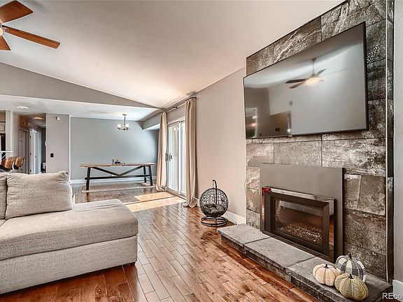 Beautiful home located in Cherry Creek School Districts Mission Viejo neighborhood. Recently updated, a must see! Hardwood floors, custom tile, granite and quartz counter tops, stainless steel appliances. Other upgrades include new solar inverter, a new gas fireplace insert (a main feature of the living room). Updated lighting and fixtures. The main floor has 3 bedrooms, two bathrooms, custom closet in the master bedroom. Large great room with plenty of space for entertaining and a dining area large enough for an 8 person dining room table. The basement has plenty of room with a flex space and 3/4 bath for guests including the laundry room. Radon mitigation system, newer hot water heater, solar panels. Backs to walking trails and open space. Close to Mission Viejo park where you can enjoy 22 acres of trails, baseball fields, picnic areas, playgrounds, and open space! Located near shopping, restaurants, public transportation, and Cherry Creek State Park!