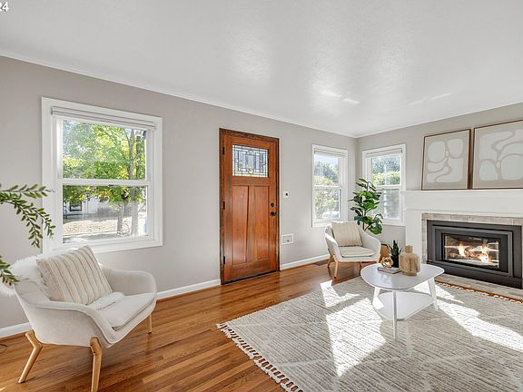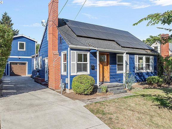 Light-and-Bright Cape Cod with spacious rooms, updated kitchen and bathrooms, hardwood floors, 8.125 kW solar energy system, and gas fireplace. Roomy primary suite on the main. Upper level bedroom has additional bonus sitting or office space. Private backyard with covered deck. ADU above oversized garage - 449sqft, 1 bed / 1 bath. Finished basement set up for potential use as separate living quarters or AirBnB for extra potential income - separate entry, full bathroom, egress window, and wet bar/kitchenette. Close-in SE location is convenient to Trader Joes, Kenilworth Park, Reed and Woodstock areas. [Home Energy Score = 5. HES Report at https://rpt.greenbuildingregistry.com/hes/OR10031557]