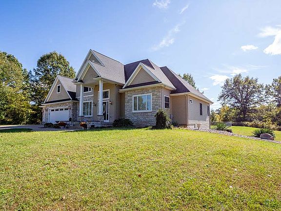 Beautiful, turn key home on 5 acres. This magnificent, one owner home was built in 2006 and offers all the amenities you could ask for. High cathedral ceilings allow for all the natural light, and the open floor plan is perfect. Large living room has gas fireplace and is overlooked by the second floor balcony. Hardwood floors and ceramic tile keep this home easy to maintain. The wide open kitchen leaves plenty of room for cooking or entertaining, and the slider leads right out to the 13x13 back deck! Main floor laundry and mudroom are accessible on the way to the attached 3 car garage. The main floor master suite is HUGE!, with handicap accessibility including a roll-in shower, open closet and tile flooring. Whole house generator (Briggs and Stratton, 16KW, 200A AutoTransfer) was installed in December of 2017 and will stay with the home. Basement is unfinished, but plumbed for an additional bath and has egress windows.