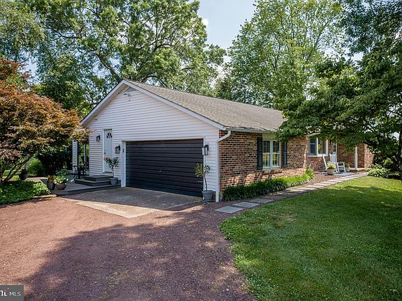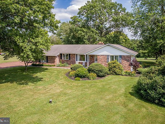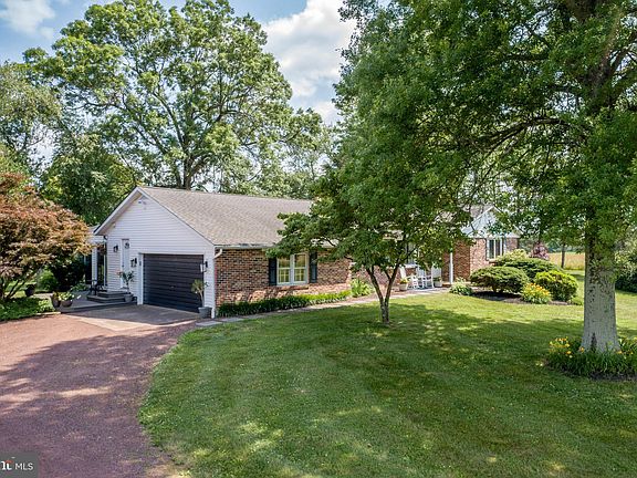 Follow the stepping stones to the charming covered porch of this well-maintained brick ranch, ideally sited off the road on a 2.81-acre lot. With one level living, an open floor plan and plenty of natural light, this home offers a move-in ready option for discriminating buyers. The living area boasts gleaming wood floors and an oversized picture window, bringing the outdoors in. The wood burning fireplace faces the living space and is nestled near sliding glass doors that lead to the rear deck. The adjoining dining area is suitable for hosting a crowd and the cozy kitchen peninsula is the perfect spot for breakfast for two. The tiled sunroom, with bead-board ceiling and walls of glass doors, expand the living space. A laundry room and powder room provide convenience. Three bedrooms, one with an ensuite full bath, are highlighted by wood trim and ample closets. The finished basement includes an exercise area, recreation area, and significant storage space. The oversized garage with workspace, plus an outdoor shed provide more storage, and a whole house generator assures safety and comfort. The outdoor deck is the perfect place to start the day, bordered by specimen trees and garden beds, with long range views of the surrounding fields. Wrap up the day with a game of horseshoes, and relax by the fire pit to watch the sunset. A short drive to Doylestown and commuting corridors, and on a lovely Upper Bucks country road, this home seamlessly balances tradition with modern flexibility for today's lifestyles.