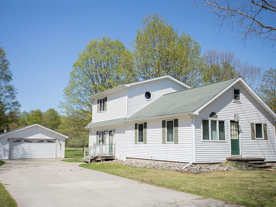 This 4 bedroom, 2 1/2 bath home sits on 84 beautiful rolling acres in Newaygo Co. With approximately 9 acres of income producing tillable ground, apple trees & mast producing oaks the property has become a wildlife sanctuary. Passionately managed strictly for wildlife over several decades, trophy deer & turkey are harvested on the property every year. A well designed trail system allows access throughout the tract's ridges, ravines & ag fields. A large 40x30 insulated & heated pole barn offers storage for your toys or a comfortable place to hang out with friends. There is also a detached 2 stall garage/clubhouse to use as you wish. Whether you are looking to build memories at an ultimate deer camp, or relax daily nestled in a private setting you call home, this property is a must see.