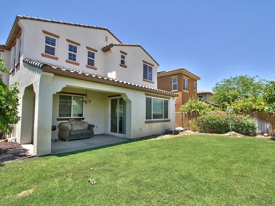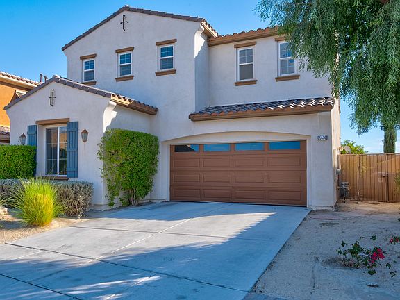 A Beautiful 5 Bedroom And 4.5 Bathroom Home In The Heart Of Palm Desert. With 2,651 sq ft of interior living space, this spacious home was built in 2006. Open layout features a large kitchen with granite slab counters opening to the living room and dining area. Brand new laminate wood floors throughout the upstairs area plus new paint throughout. One en suite bedroom with it's own bathroom plus a powder room are located downstairs. Upstairs is a master suite with walk in closet plus an en suite bedroom & two additional bedrooms and an additional bathroom. Spacious backyard is pool sized and is beautifully landscaped with lush green grass. Dolce is a gated community with low HOA dues of $120/month and a clubhouse with community pool and spa. Located in the heart of Palm Desert, you will be able to enjoy a great location close to shopping and dining.