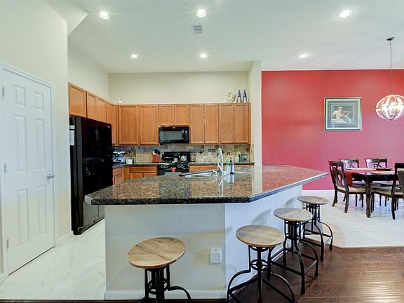 Beautiful home & super LOW TAX RATE. First floor has been upgraded with great quality engineered wood laminate flooring, and newly installed large tile in all wet areas. Spacious formal dining, huge island kitchen, breakfast bar, granite counters with travertine back splash, updated lighting and open to the family room with high ceilings. Primary bedroom is down w/large master bath, dual sinks & walk in closet. Huge game room and Media room up stairs. Covered patio with large yard, recently installed sprinkler system wifi controlled, yard big enough for a pool, and the best part is NO BACK Neighbors.