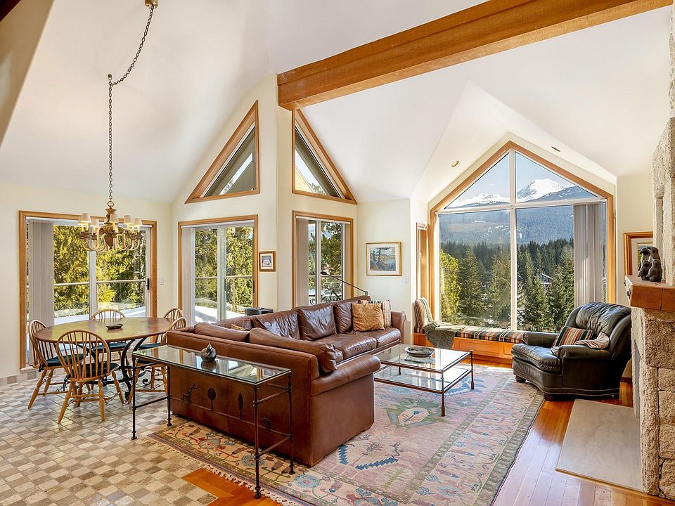 No need to check the ski report, just look out your window! MAJESTIC MOUNTAIN VIEWS AND ULTIMATE PRIVACY! STUNNING NATURAL LANDSCAPES OUT EVERY WINDOW of this END TOWNHOME at sought after FALCON'S NEST! Nature trails at your doorstep and huge bright spaces inside! Great room, open concept, with soaring ceilings through living, dining & kitchen, stunning stone gas fireplace, massive central island, & miles of counter-space. SEPERATE SPACES MAKE LIVING EASY with Master Suite and LOFT up, Bedroom and full bath on main. Downstairs holds two more bedrooms and family room. Perfect amount of space for you to make this outstanding townhome your full time Whistler residence or weekend family getaway. Double garage, extra parking, excellent outdoor space with two decks + ROOFTOP DECK!