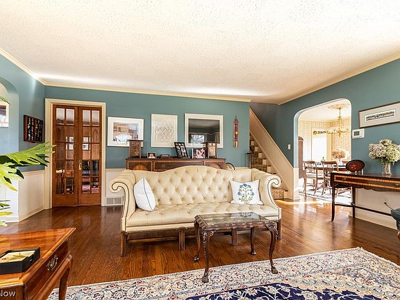 4 large bedrooms with fabulous built-ins and large closets. Beautiful living room with Picture window, hardwood floors & wood burning fireplace. Dining room has leaded built-in cabinets, and access to outdoor patio. Upgraded kitchen with breakfast area, Bay window, cherry cabinets, granite counters, stainless steel sink and all appliances. Library with bookshelves & cabinets. Finished rec. room, Ohio State Waterproofing. Close to Cleveland Clinic, University Hospitals, University Circle, shops and restaurants.