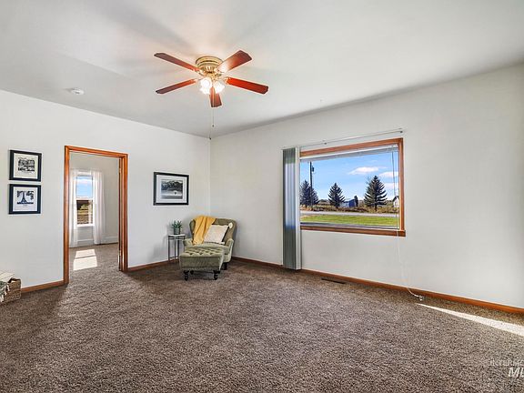 Bring your cash or loan (FHA or VA also) - Kimberly farmhouse on 1 acre with water share and small workshop, located just outside of town. This well-cared-for property is a great opportunity for an investor or homeowner. The home boasts excellent curb appeal thanks to a new roof, siding, and a spacious yard with a full sprinkler system. Inside, you’ll find a generously sized living and dining area. The laundry room also serves as a mudroom, providing access to the basement where you’ll find the furnace, water heater, and a large storage room. Forced-air furnace keeps you toasty. Outside, there is a high-quality two-car carport. The small insulated shop can be used for storage or as a hobby space. The lot is cleared and ready for a pasture, a large shop, equipment parking, or even expanding the primary home. Seasonal water is available from the pond to the south. Buyer to supply their own pump and equipment if they choose to use the water right. Quiet and clean daytime-only business to the south is BetaSeed. More than a drive buy, call for a look inside.