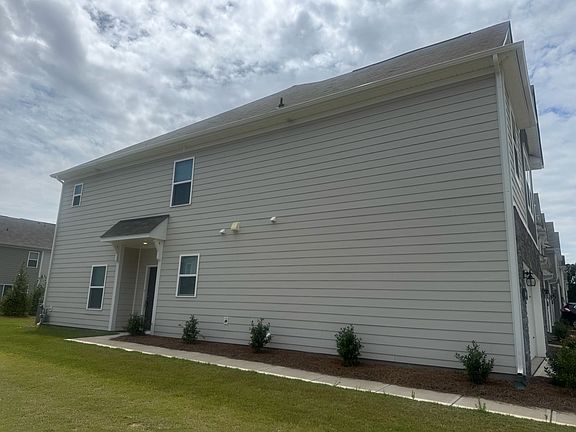 This townhome for rent is located at 3554 Secrest Landing in Monroe, North Carolina's Secrest Landing community. The eat-in kitchen is highlighted by granite countertops, an island with a breakfast bar, and a full suite of stainless-steel appliances including a smooth top stove. The main bedroom includes a walk-in closet and an ensuite with a separate shower. Secondary bedrooms share a bathroom.