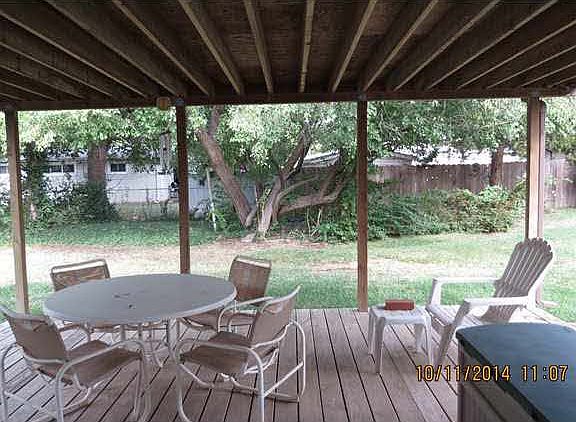 Newly updated!! New tile in kitchen and bath. Fresh paint in bedrooms, kitchen and utility!! Gorgeous neutral colors that will coordinate with almost any color your buyers use for accents. Off-white carpet in LR, master and hallway is freshly clean! Sellers uncovered the pretty hardwood floors in two of the bedrooms! HVAC is newer, sprinkler system installed in summer of 2015 front and back, and large yard with great covered deck off the back of the house. Windows were replaced with more energy-efficient units at some point in this one-owner home. “ HVAC approx. 7 yrs old with humidifier, Sprinkler system installed 2014. Vaulted ceilings in two of the bedrooms, hallway, living room and kitchen. Large fenced yard.