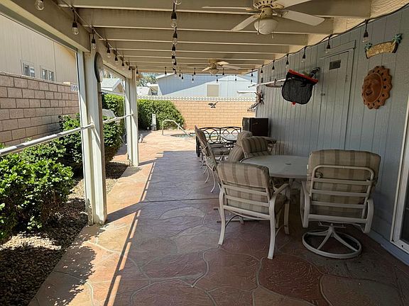 Turnkey Furnished with private pool/spa in Ivey Ranch. 2 bedroom, 2 bath plus Den. Slab granite kitchen counters. Neutral tile. Ceiling fans. Covered patio. You own the land! Well maintained. This home is being offered Turnkey Furnished. Ivey Ranch CC & GC, is a gated, senior community of manufactured homes integrated with a 9 hole golf course, Pro-shop, Driving Range, 4 community pools, 2 community spas, Club House and a Seasonal Restaurant. In Ivey Ranch you own the land. Seller will consider financing.