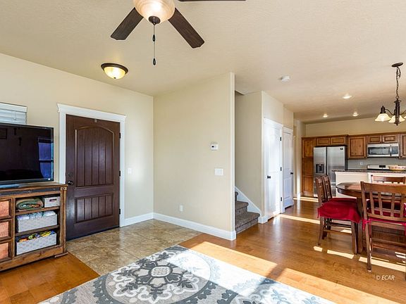 This is a PERFECT family home with pride of ownership show inside and out! The front yard has been fully landscaped with an automatic sprinkler system. The back yard has been totally completed with a full play area and sand box for the kids, new curbing, rock, and trees in the yard with a built in planter box and free stand pots with roses, blueberries, and blackberries. It is awesome! On the inside it has had top notch care! On the main level there is an open floor plan that leads that from the living room into the dining room and kitchen area, there is also a half bath perfect for guests. Kitchen has an upgraded stainless steel gas range and beautiful custom cabinetry. Upstairs has 2 bedrooms along with the large master suite. The fully finished basement has tile throughout with another master / guest suite and a large family room that has custom lighting theater. This is an absolutely amazing home that will not last long! Come see it today!