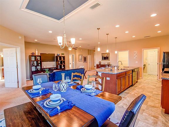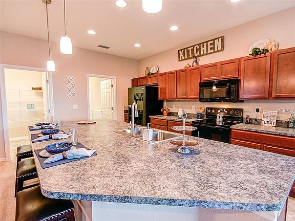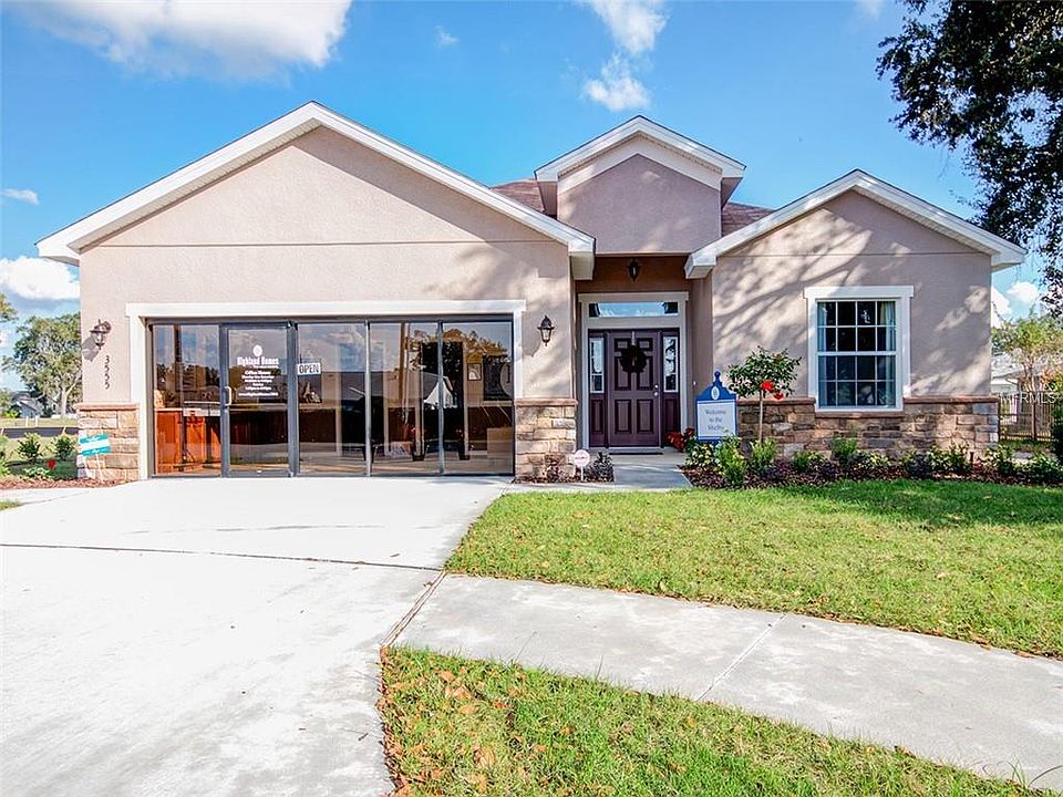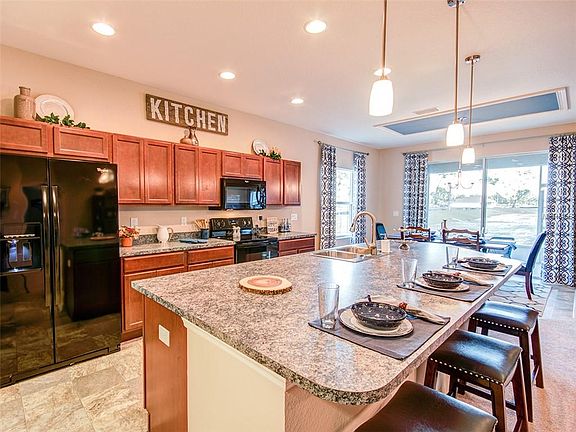 Professionally designed model home for sale in Lakeland, Florida! This home features a spacious gathering room, sunny dining café, and kitchen with counter-height island & pendant lighting. Relax in the luxurious owner's suite with double-door entry, tray ceiling, walk-in wardrobe, and spa-like owner's bath with corner-style garden tub, tiled shower, dual vanities, and closeted toilet. Plus, enjoy outdoor living on your large screened lanai! This beautiful home includes stylish finishes & features like clove birch wood cabinets in the kitchen with decorative knobs/pulls, premium, low-maintenance laminate countertops, stainless steel side-by-side refrigerator, smooth-top range, microwave, & quiet-operation dishwasher, walk-in pantry with tight-mesh shelving, carpet in bedrooms & gathering room, low-maintenance vinyl flooring in kitchen, cafe, laundry room, foyer & bathrooms, drop zone at garage entry, front-load washer and dryer, Jack-and-Jill hall bath between bedrooms 3 and 4, dual-switch ceiling fans with lights in gathering room & all bedrooms, recessed lighting in owner's suite, gathering room, & kitchen, wireless security system, built-in surround sound system, custom-fit window blinds, 25-year warranty shingles, Florida friendly landscaping with irrigation system, oversized, insulated 2-car garage...and more! Also includes Radiant Barrier, R-30 ceiling insulation, foam injected block insulation, double-pane Low-E windows, and a programmable thermostat. Come make this your new home today!