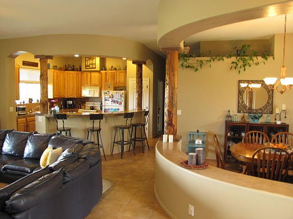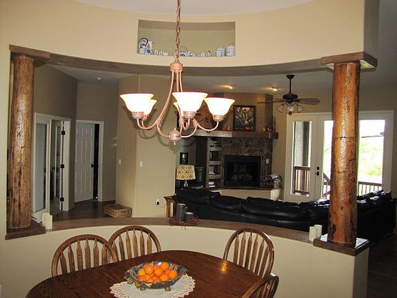 This custom home shows pride of ownership. As you enter the front door you are welcomed by a light and beautiful open floor plan, with great architectural design, and custom touches like the venetian plaster built-in entertainment center and the stone wrapped gas fireplace. The kitchen features granite counter tops and hickory cabinets. You will find 10ft ceilings throughout the home. The home offers a desirable split 4 bedroom 2 bath floor plan. The back porch features un-obstructed views that will take your breath away. The 1,000sqft walk out basement is not included in the homes square footage. The exterior of the homes professional landscape features, mature fruit & willow trees and a beautiful custom water feature with a meandering stream that welcomes guest's to your home!