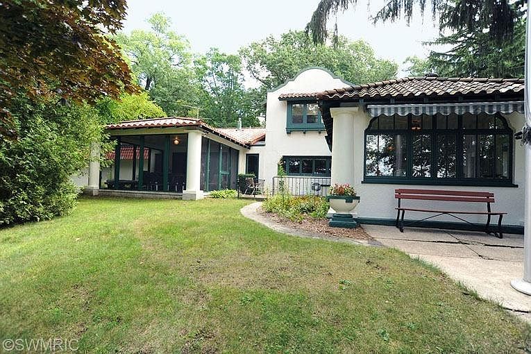 To schedule your private showing, contact Beth Skidmore, (616) 364-9551, BethSkidmore@bhhsmi.com. For full property details, visit www.BHHSMichiganRealEstate.com/14049484 MEDITERRANEAN VILLA located on 1.48 acres and 245 ft of lake frontage on Dean Lake. Twelve minutes to downtown medical mile. 30x15 dock, two patio's, 4 season room with heated tile floor, screened in sun room off huge master bedroom all overlooking lake. 3 stall garage, greenhouse with swamp cooler, workshop 463 sq ft, gazebo for entertaining, heated sidewalk to greenhouse in winter, built in outdoor gas grill. Wood fireplace in living room, mahogany wood office or formal dining room, hall of closets and built in bookshelves, main floor master suite, master bath complete with jacuzzi, all floors are wood, tile, carpet or stone. Walk in pantry with built in wine rack, bedroom two and bath on main with third huge bedroom and bath on upper.